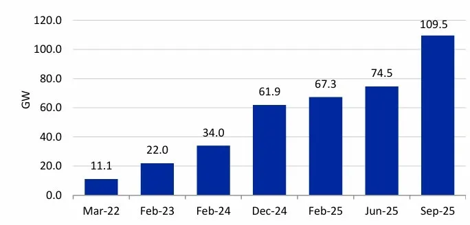 The report also notes that the solar photovoltaic (PV) module manufacturing capacity in India has increased over 5 times in last 3 years - 109 GW as on September 2025 from less than 20 GW in 2022.