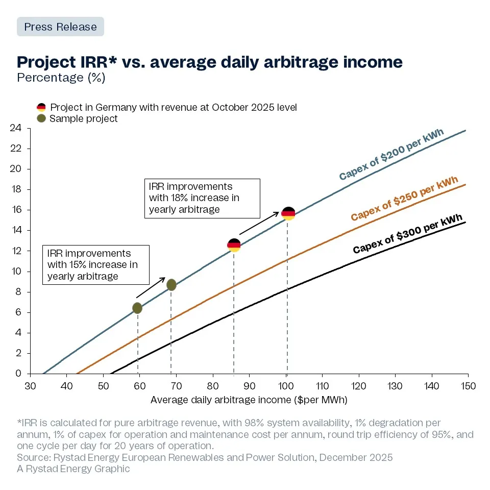 The report further found that since the new system was implemented, arbitrage potential has increased by 14% on average across European power markets. Some countries, such as Austria and Slovakia, saw increases of over 20%, while others, including Portugal, Norway, and Sweden, experienced only minor improvements. The analysis also noted that if a battery earns around 20% more each year due to these price swings, its total return on investment could increase by about 3% over 20 years.